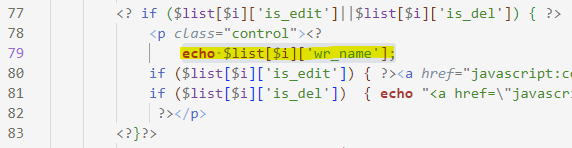 위의 예시처럼 <? .... ?> 사이에 들어가는게 아니면 <? echo $lists[$ii]['wr_name']; ?> 이렇게 넣어주시면 됩니다.
