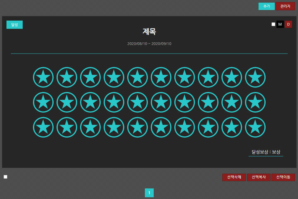 게시물별로 약간의 커스터마이징이 가능한 달성표 혹은 스탬프 게시판입니다.
