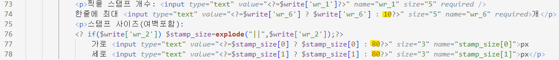 원하실 경우 write.skin.php 파일에서 하이라이트한 부분을 수정 해주시면 됩니다 (아무것도 안뜨게 하고 싶을 경우 "" 그외 숫자 기입)