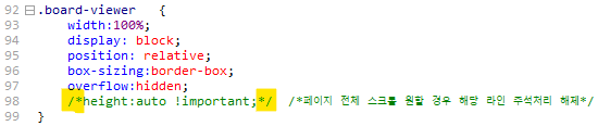 상관없이 전체 내용이 스크롤되도록 처리하고 싶으실 경우 .board-viewer를 찾아
