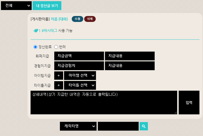 - 게시판이 여러개면 게시판별로 정산글을 작성해야하는 불편함은 있지만 이쪽이 편의성에서는 더 낫다고 생각해서 이렇게 제작했습니다
