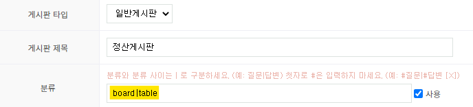 - 정산가능한 게시판이 한개라도 로그링크 및 해시태그를 사용하기 위해서는 분류를 반드시 사용해주세요