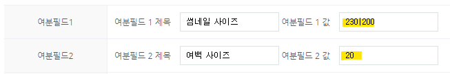 - 여분필드1 값: 썸네일 사이즈를 정합니다. 1개의 값만 입력할 경우 (예: 240) 가로와 세로 값이 동일하게 지정됩니다. 가로와 세로 값을 다르게 지정하고싶은 경우 가로|세로 형식으로 입력합니다.(예: 230|200) 설정하지 않을 경우 기본값인 240*240으로 출력됩니다.
