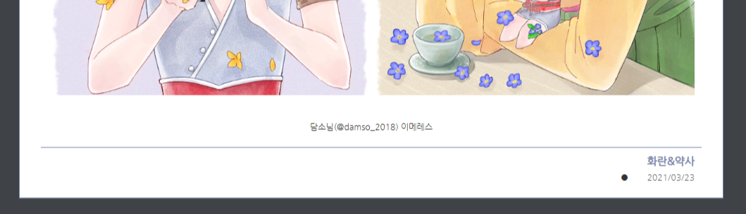| [게시판스킨] 캐릭터 정리 게시판 ver.2 (최종수정 22.11.26 04:29) (0) | 2020.11.02 |