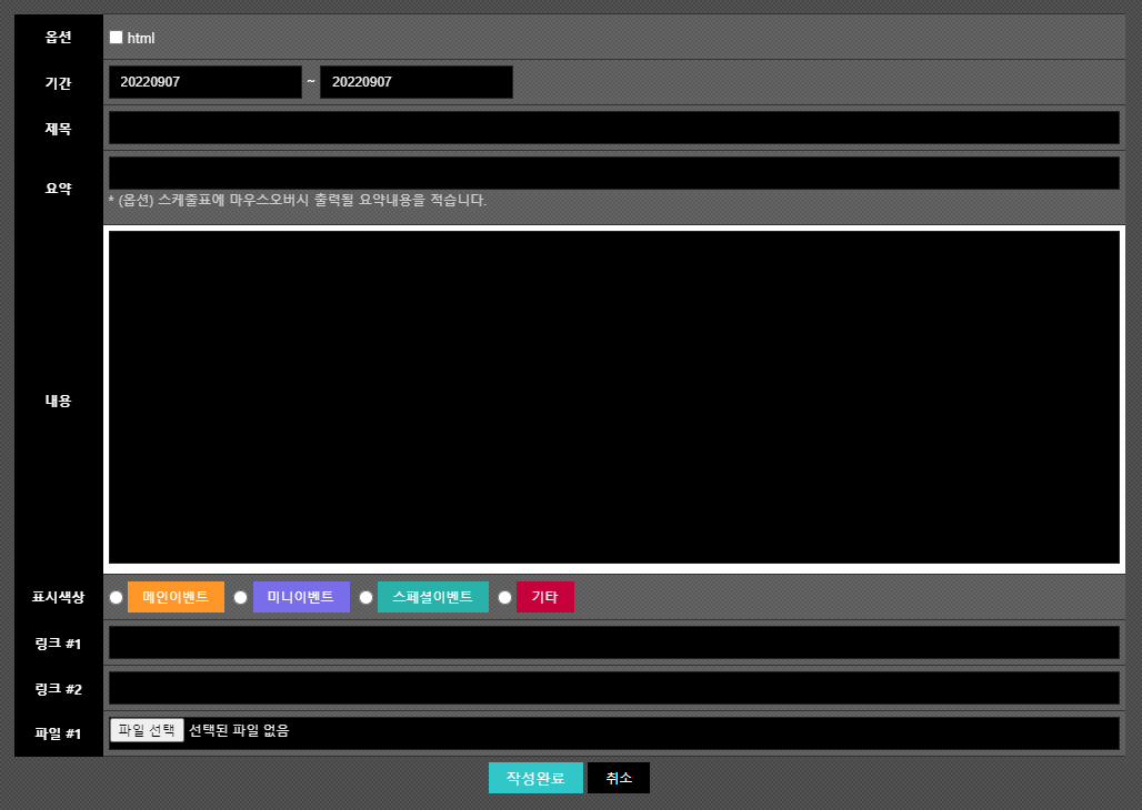 아보카도 에디션에서 사용 가능한 스케줄 게시판입니다.